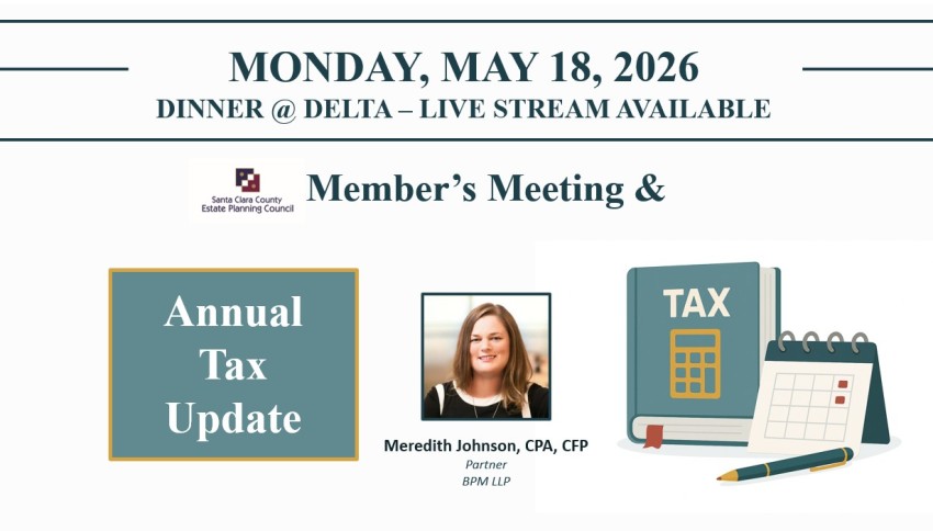 This activity has been approved for 1.0 hours of MCLE credit by the State Bar of California. The Santa Clara Estate Planning Council is a State Bar of California approved MCLE provider, MAP Provider #9350.